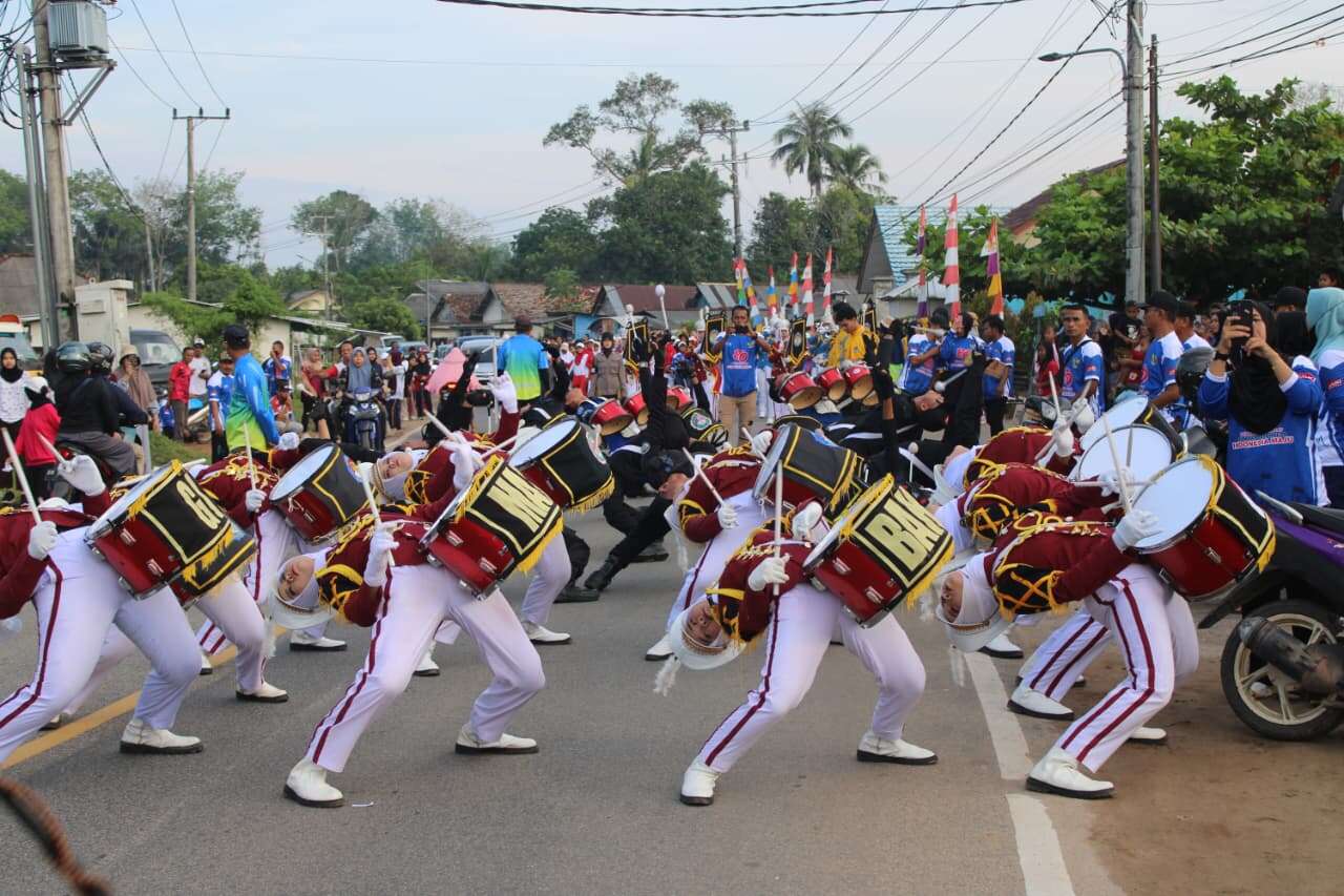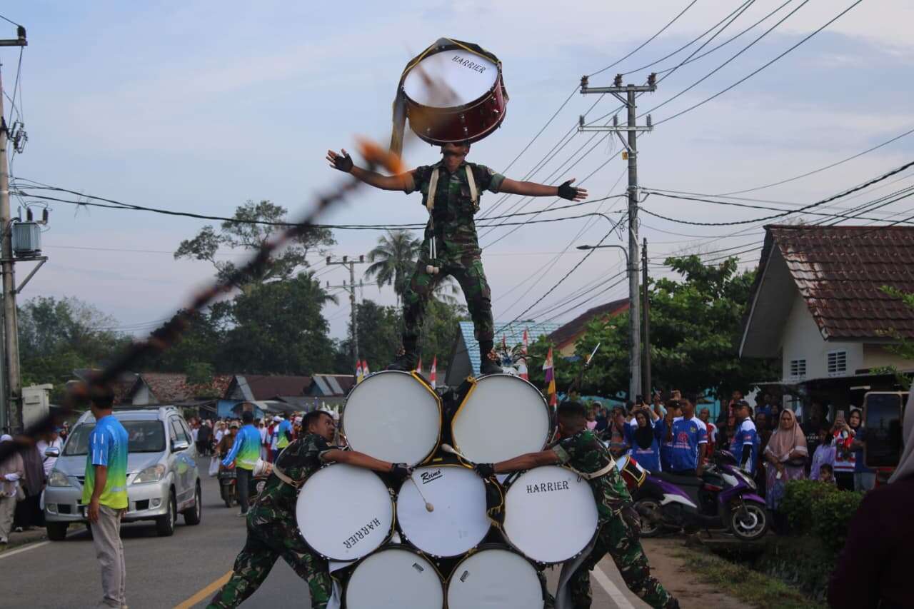GUNUNG MUDA— Penampilan Drumband Gita Maras Bahana (GMB) SMA Negeri 1 Riau Silip kembali memukau masyarakat. Dalam rangka kegiatan Jalan Sehat (14/09/25) Desa Gunung Muda, GMB sukses menghibur para peserta dan tamu undangan yang hadir pada Minggu pagi.